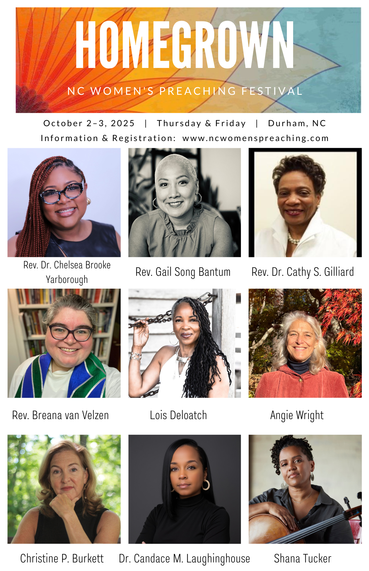 We are now planning the 12th Annual HOMEGROWN: North Carolina Women’s Preaching Festival. Guided by our theme of “Digging Deep, Rising Up,” we will reflect on the wisdom of Esther (Esther 4:14-16) and the Samaritan woman at the well (John 4:39). Together, we will hear wonderful preaching from conference attendees and have time for group conversations on the art of proclamation in all its forms.